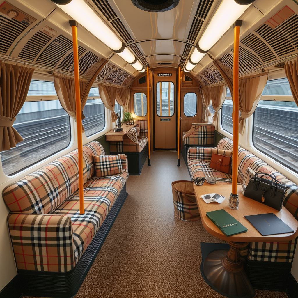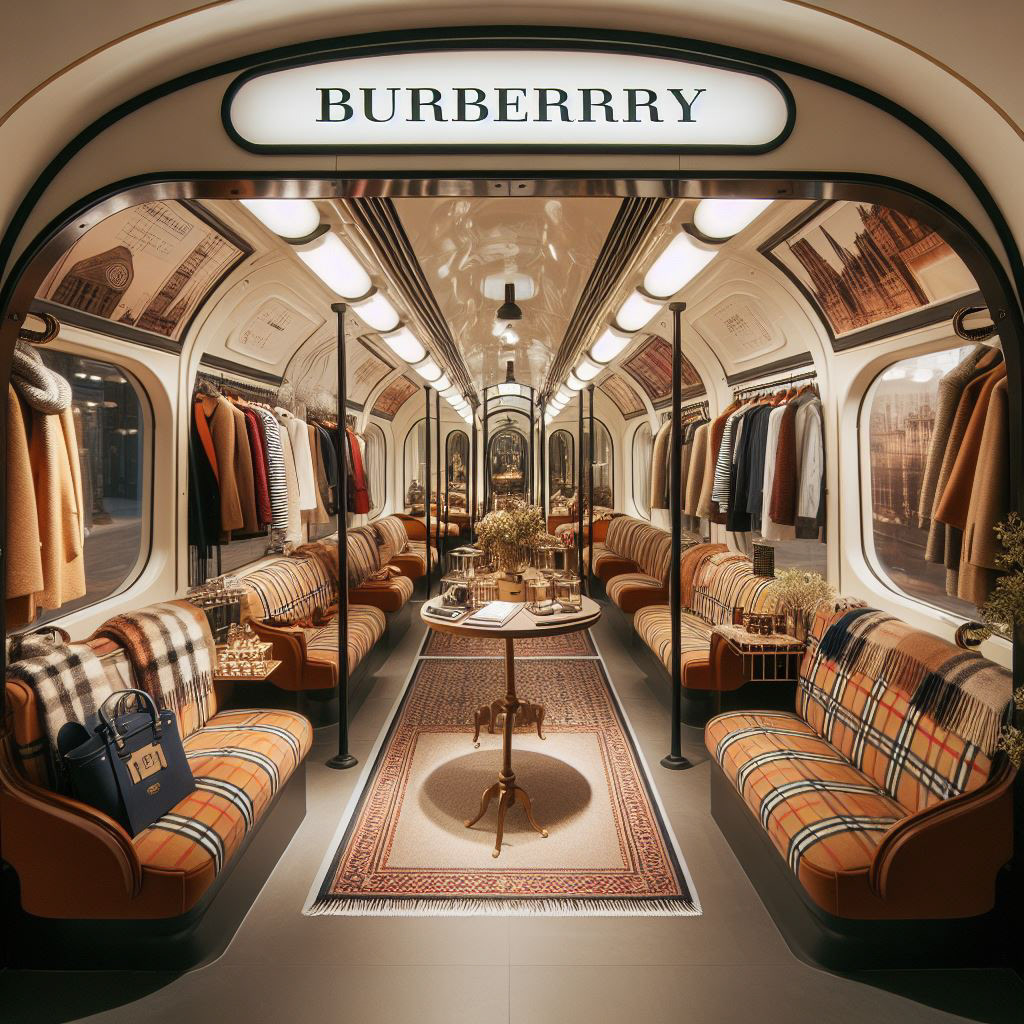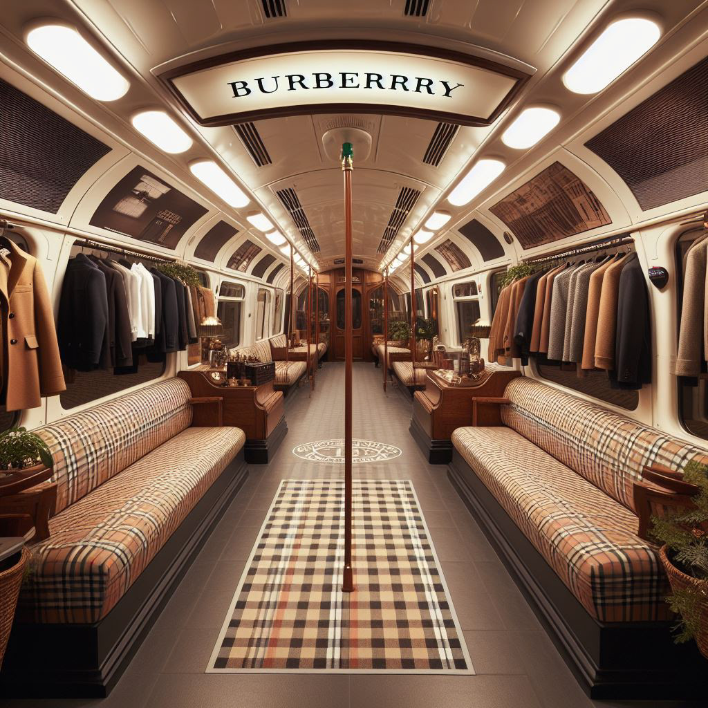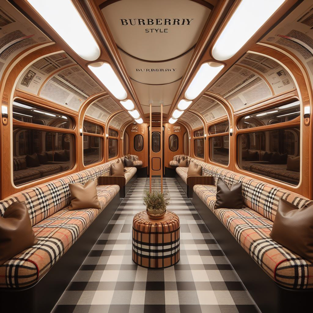 Reinterpreting Burberry’s signature check and outerwear heritage within a transport-inspired installation, the carriage becomes a moving gallery, a luxury concept store, intimate runway space or curated brand activation in Central London. The design fuses Burberry’s modern craftsmanship with the raw industrial charm of the Tube, turning nostalgia into a sensory, social experience.
